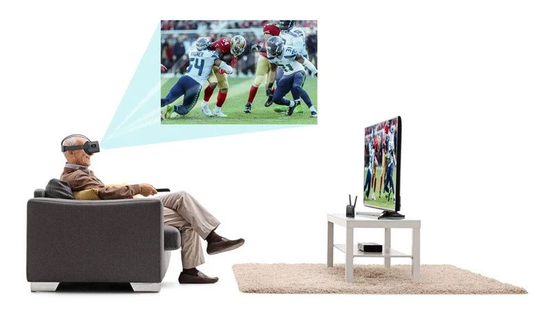 The Vision Buddy is the perfect accessory for those with low vision or vision impairments! Simply slip the headset on and magnify medication bottles, newspapers, and even your favorite television programs. The Vision Buddy HDMI Streamer, included with the Vision Buddy, connects to your TV and streams it directly into the Vision Buddy headset in order to maintain high video quality. Zoom in and out on live TV or anything else you want to magnify!